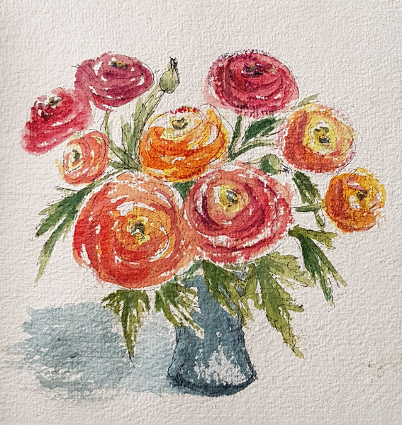 Ranunculi, the „roses“ of early spring. They are my favourites; they come in many colours and look a bit like roses.