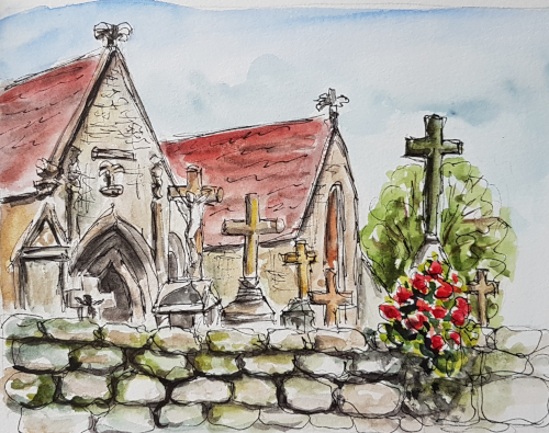Above: houses in the museum’s village of Poul Fetan, Brittany. Below you see another scene from the same village which I had painted and posted some time ago. It’s much more detailed and had taken much more time…