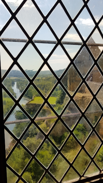 Oben im Schloss fand ich nicht nur eine Aussicht, sondern auch einen schönen Platz zum Zeichnen: die steinernen Sitzbänke am Fenster, wo früher die Damen mit ihren Stickereien saßen…