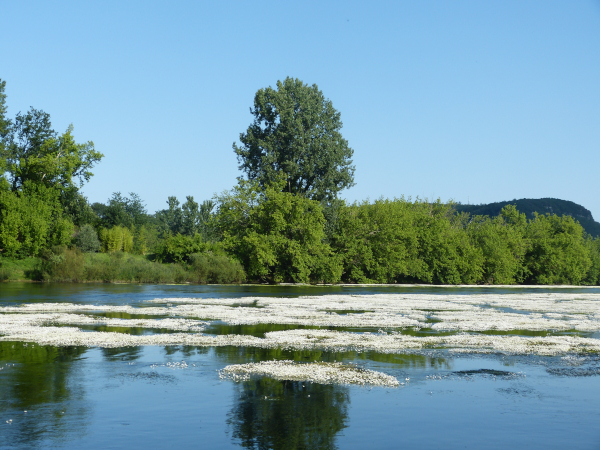 Die kleinen Punkte auf der Dordogne (Fluss) sind Kanufahrer. Außer diesen, kleinen Anglerbooten und den traditionellen „Gabares“, die heute nur Bootsausflüge anbieten und sehr leise und langsam sind, dürfen keine anderen Boote fahren (erst sehr viele Kilometer flussabwärts, vor der Mündung) . Die Dordogne ist einer der saubersten Flüsse Europas, sie beherbergt 40 Fischarten, unter anderem Lachse und den Flussstör. Biosphärenreservat.-