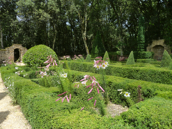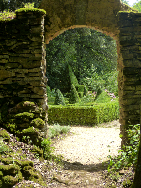 Der letzte Tag hier! Und ich war mir gar nicht sicher, ob ich heute nochmal weiter fahren sollte, doch schließlich war es das schöne Wetter, das mich dazu brachte, nach Carlux zu fahren, um die „Jardins de Cadiot“ zu besuchen. Und ich bin sooo froh, dass ich das gemacht habe! Der Garten ist weniger bekannt als die anderen, die ich bereits besichtigt habe, doch für mich ist er der Schönste! Absolut romantisch… Und auch wenn es hier ebenfalls in Form geschnittene Büsche gibt, so darf der Rest durchaus etwas wuchern! Und weil er mir gar so gefallen hat, zeige ich doch auch gleich hier Fotos, zusätzlich zu meinem Aquarell…