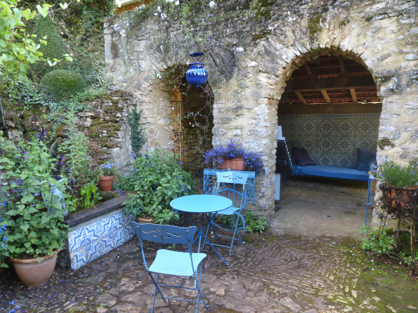 Sogar ein kleines Labyrinth, das man vom oberen Teil des Gartens gut sehen kann (das aber hoch genug ist, dass man sich innen verlaufen kann). Auch dabei: ein ganz zauberhafter portugiesischer Hof, hier habe ich gemalt.