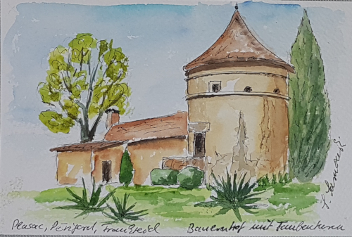 Und schießlich malte ich noch nach einem Foto den kleinen Weiler „St.Félix- de-Reilhac“. Übrigens, Euch ist sicher aufgefallen, dass hier viele Orte mit -ac enden: das ist occitanisch (also alt-südfranzösisch) und heißt „Ort“ – also logisch, dass es häufig vorkommt!