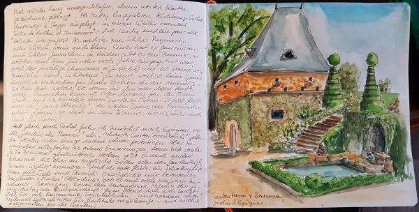 First, the round tour led me to the „Princess Garden“, where I found tables and chairs on the lawn – perfect for my first sketch.