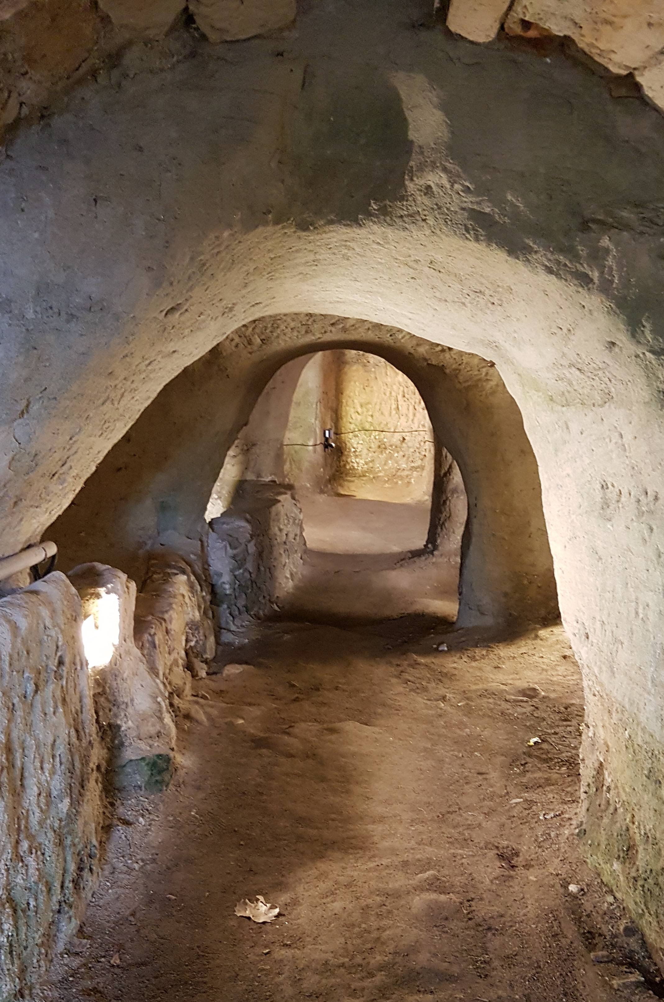 Above: one of the typical ancient rock-cut-cellars in Terrasson („cluzeau“). They were used as shelter and refuge as well as for storage. Below: the large mural explains the cellars.