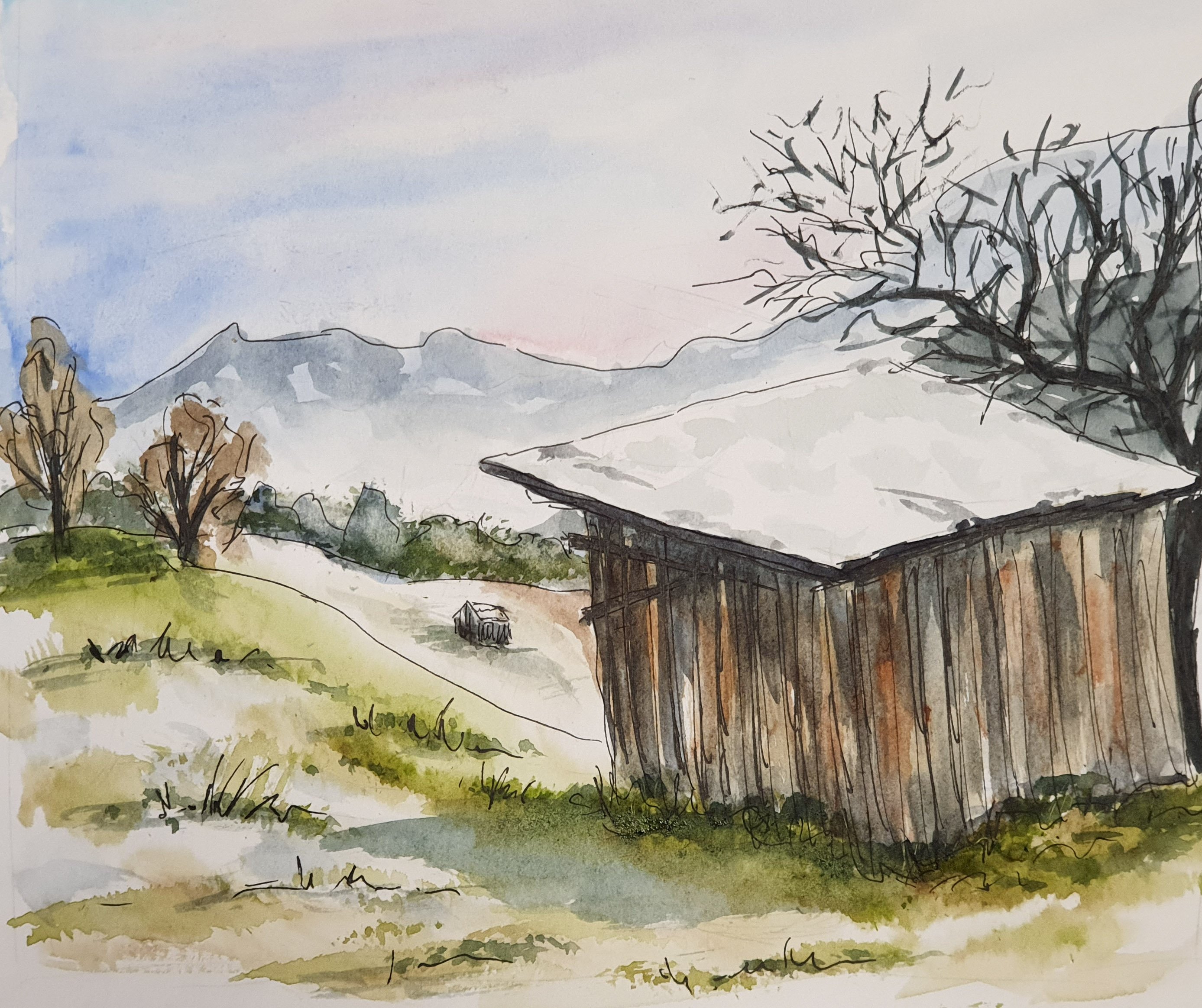 This curious building from the 12th century is called „Lantern of the dead“ – actually, today nobody knows exactly what its function once had been. Now I just add the two sketches I had made of Sarlat and already posted some time ago: