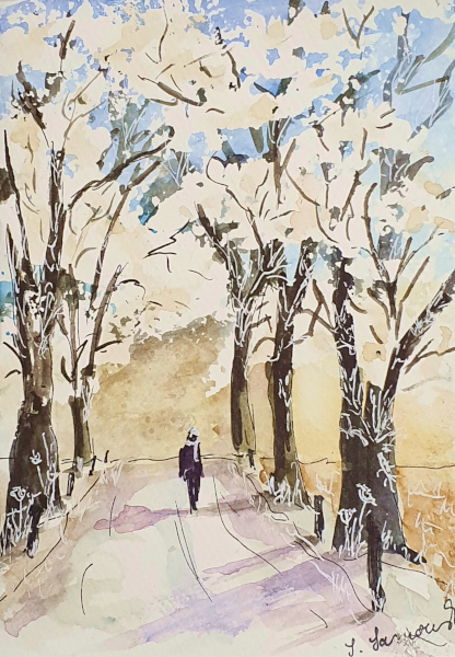 Today I’ve made two watercolour cards; the landscape from a reference photo, the candle with decoration directly from my own small arrangement.