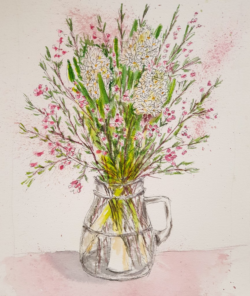 Da ich momentan immer lieber später frühstücke, habe ich vorher Zeit für alles mögliche… zum Beispiel zum Zeichnen! Ein kleiner Strauß, den mir gestern eine Freundin mitbrachte: