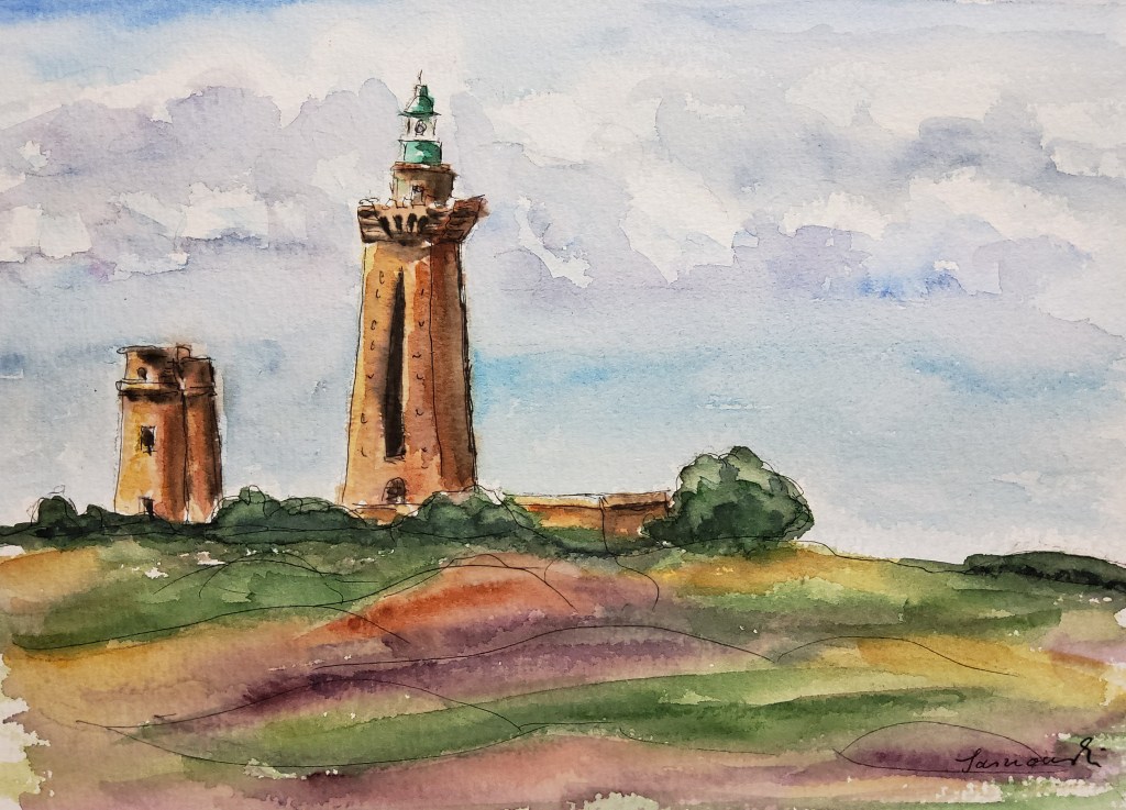 The Fort de la Conchée is one of the fortifications Vauban had had built for Louis XIV. It’s situated on a rock in the bay of St.Malo. For this picture I didn’t use lines, it’s painted in the classical watercolour style.