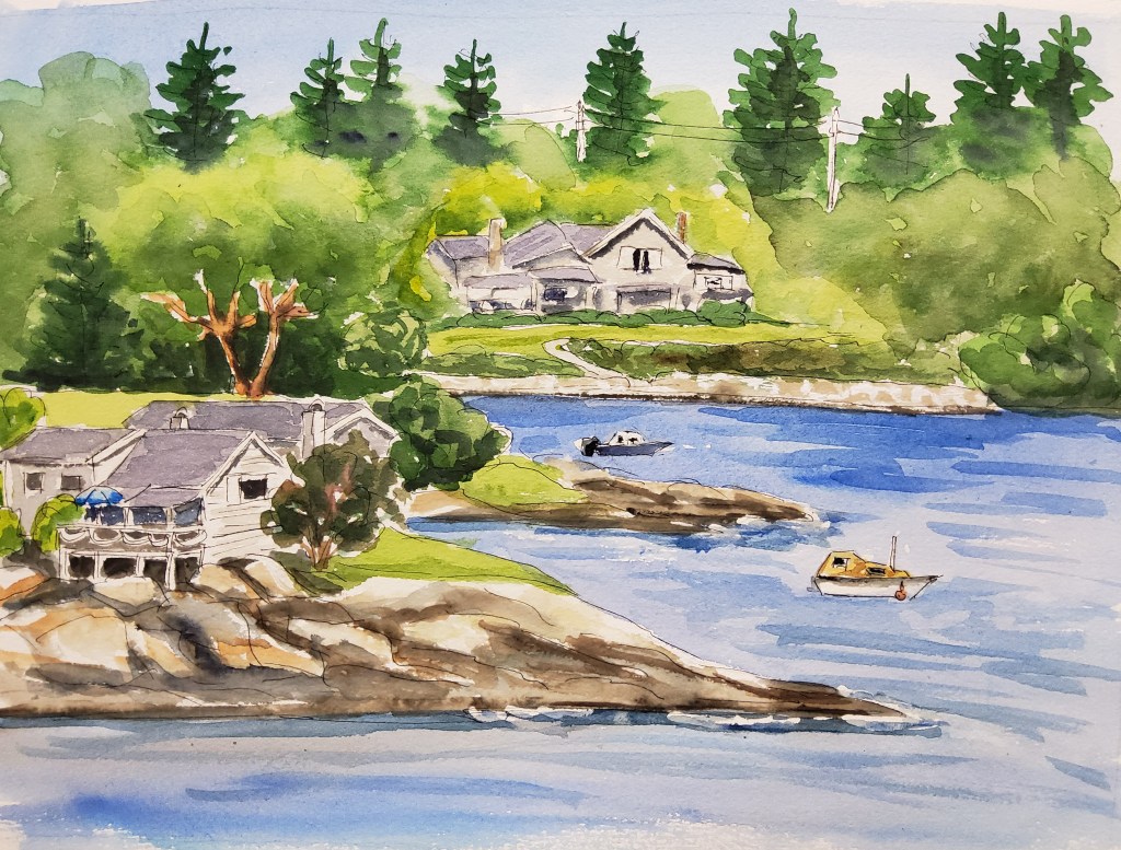 Von der Fähre aus hatte ich das Foto gemacht, das als Vorlage diente. Allerdings bin ich nicht 100%ig sicher, ob das noch die Hauptinsel war oder eine der vielen kleinen Inseln in der Bucht…