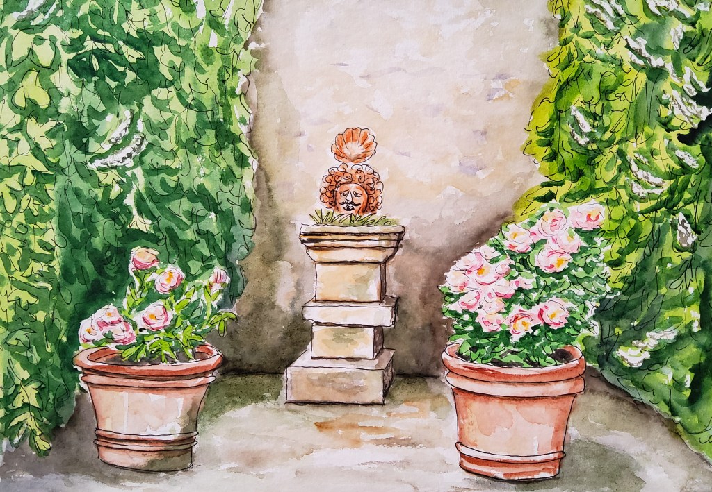 Ein weiteres Bild aus der Périgord-Serie. Ich hatte das Motiv damals für eine Postkarte gezeichnet und nun aber als etwas größeres Aquarell gemalt. Eine Freundin bat mich, stets die Größe meiner Arbeiten mit anzugeben, da man sich das am Bildschirm schlecht vorstellen kann: ich werde versuchen, daran zu denken! Dies ist nun 30×24cm, also etwas größer als DINA4.