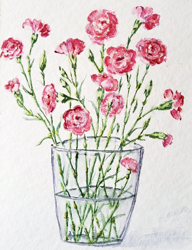 Zu Besuch bei meiner Mutter gibt es immer irgendeinen Blumenstrauß zu zeichnen… Bei den Nelken sind auch die Stiele sehr interessant!