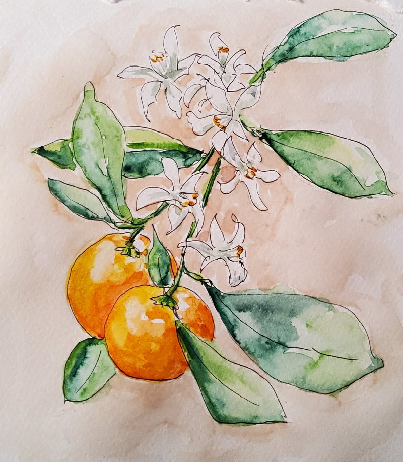 The flowers of the small orange tree in the flower pot send their fragrance all over the living room. And the tiny oranges are just cute!