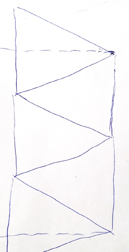 Discovering that the individual pieces showed a slight curve on the long sides, I first had to cut these to get straight-line triangles.