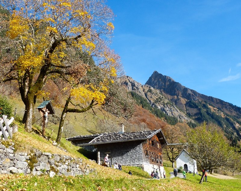 Last Sunday, I wanted to enjoy the sunny weather hiking in the Allgäu region near Oberstdorf. Taking first the train, then the bus, I arrived in the morning at the starting point for several hiking tours. Actually, you can take a nice walk from Oberstdorf to this starting point, but that would have added 45 minutes to my tour, which, for my knees, would have been too much. My destination was the historical village of Gerstruben, on 1150m above sealevel.