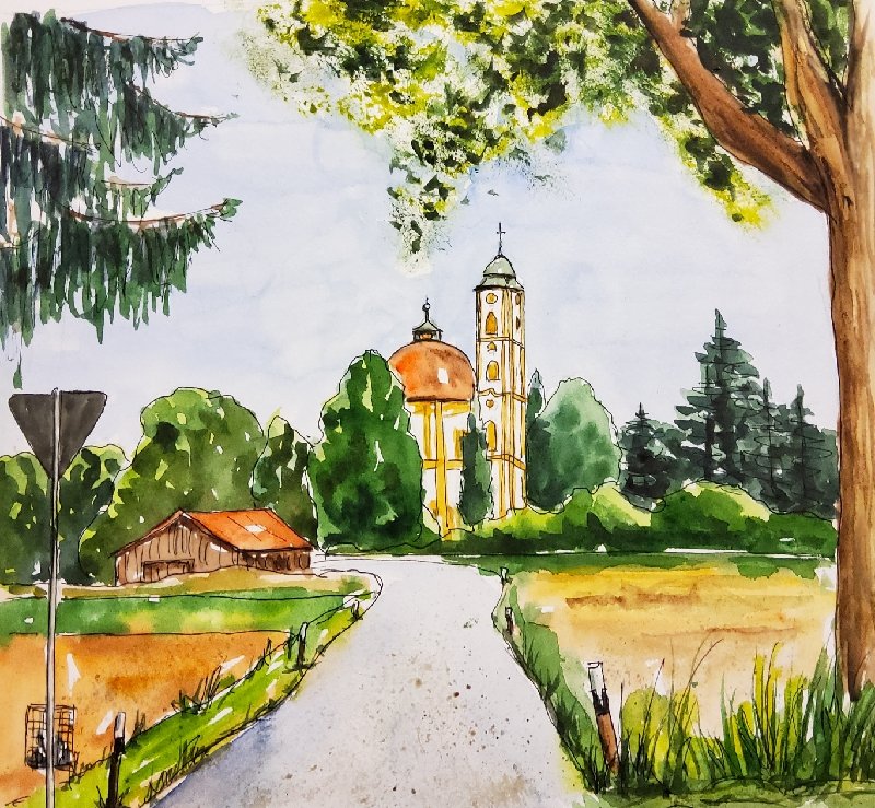 Busy sketching and painting (see my last post), I stayed more than 2 hours before making my way back. I took the same path I had come because I now knew that it was ok. On the last kilometer my knees began to hurt a bit, but I was happy to have achieved my goal with one artificial knee and one that also will need surgery in the near future… Anyway, my next visit of Gerstruben will be planned according to the opening schedules of the museum and the restaurant!