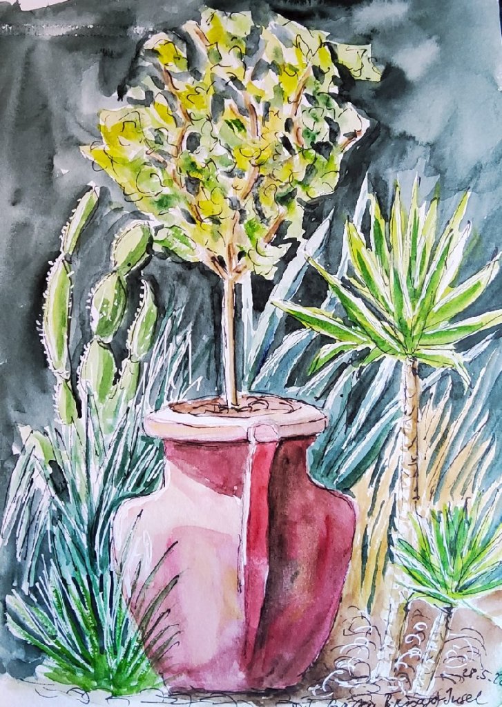 Der botanische Garten ist in Themenbereiche aufgeteilt, die den Kontinenten und Klimazonen entsprechen. Das Bild unten habe ich (wenn ich mich richtig erinnere) im Bereich „Kalifornien“ gezeichnet.