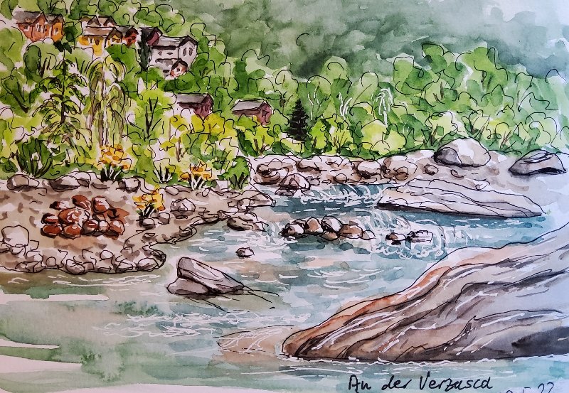 Am Fluss selbst habe ich auch gesessen und gezeichnet, diesmal bei Brione: