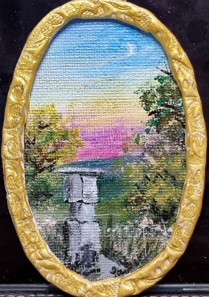 Still hooked on tiny acrylics… A lot of my photos have been painted in a small size, using tiny canvases (7x3cm), small slices of wood and paper in handmade frames. Some are meant to hang on a wall, others have added magnets for the fridge – I love them all!