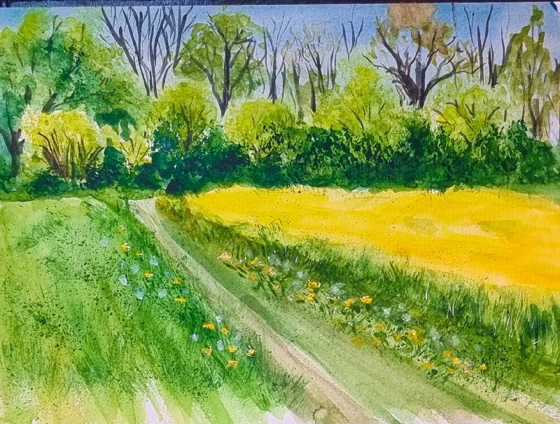 The two watercolours above and below have been done on the outside of a sketchbook which featured a white canvas binding (by Canson). Treated with watercolour primer, it accepted the colours although the canvas structure needed a bit of getting used to.