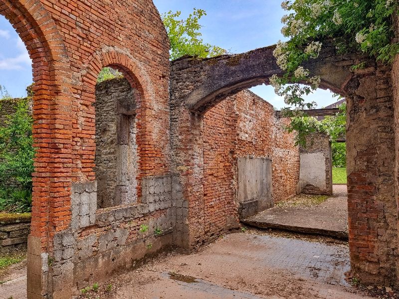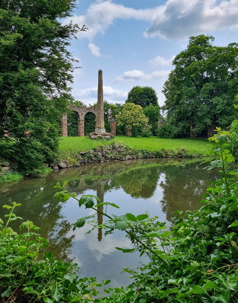 Typically you’ll find surprising views with romantic buildings and artificial ruins, here the „Roman Water Castle“