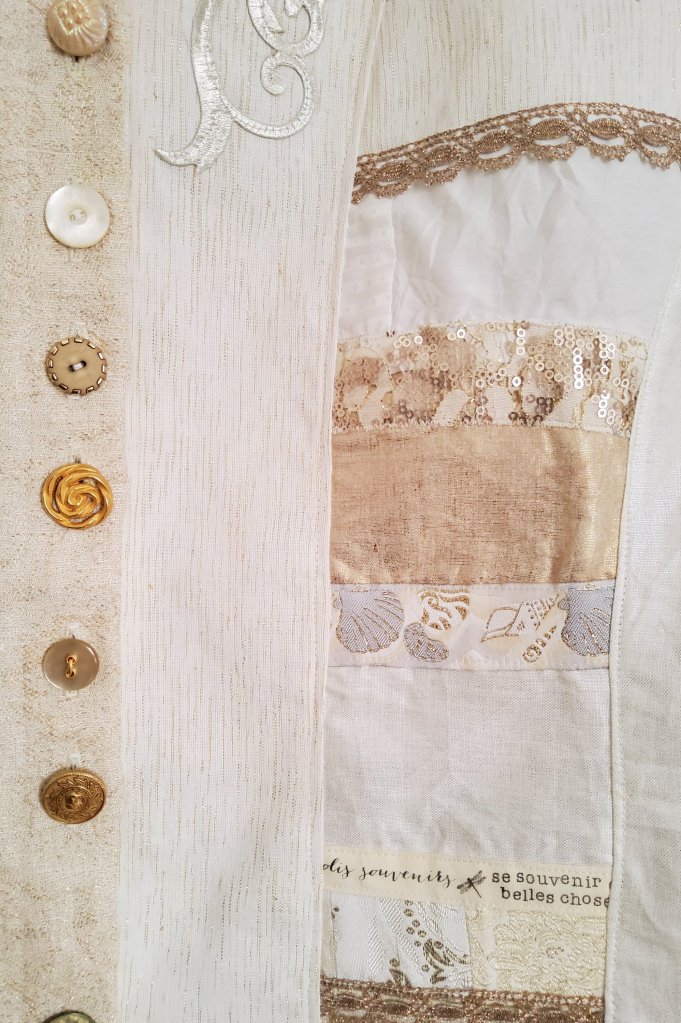 As you see, I’ve added vintage lace pieces to the printed ones, making it hard to descern which ones are printed and which ones appliqué!