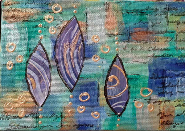 With this acrylic painting I first tried to recreate the skin from my memory; afterwards I’ve added a bit of gold tone to the underside of the peeling bits, for added interest. Below you see a close-up:
