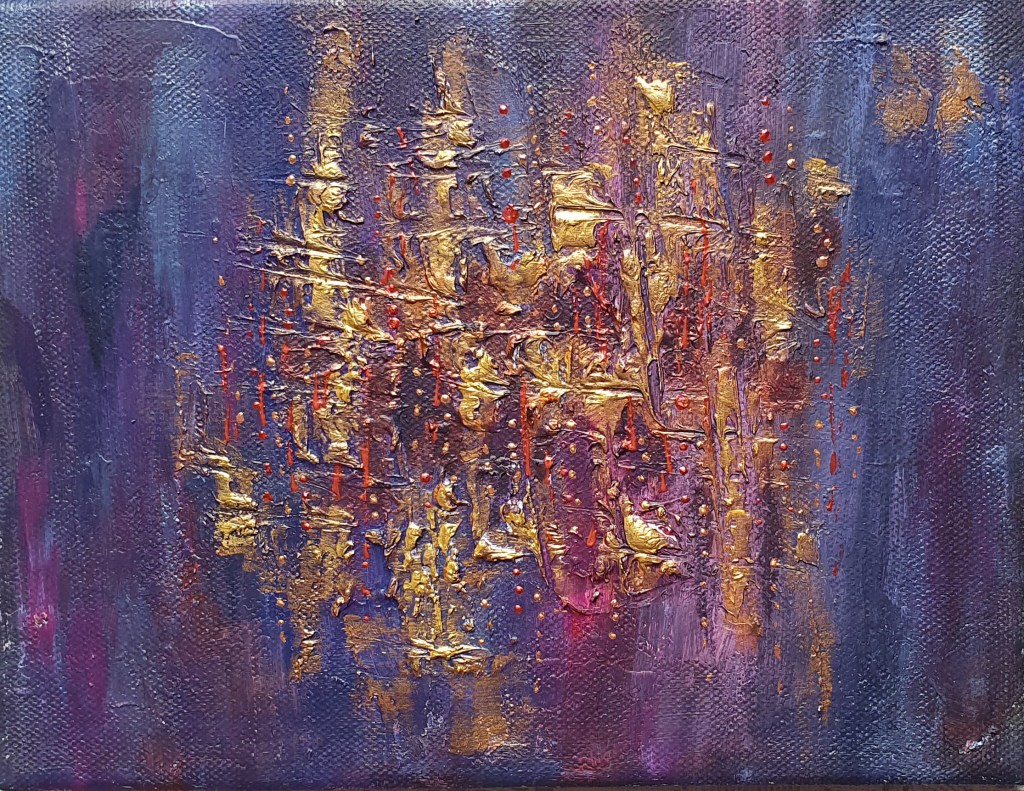 Bei diesem Acrylbild habe ich zunächst versucht, die Rinde so wiederzugeben, wie ich sie in Erinnerung habe; meine künstlerische Freiheit besteht darin, dass ich die Rückseite der sich abschälenden Stücke mit goldener Farbe betont habe. Unten ist nochmal ein Ausschnitt zu sehen.