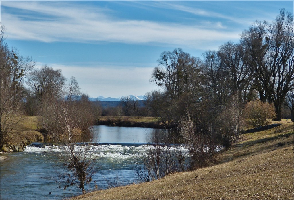 Then I drove towards Diessen on lake Ammersee, only making a short stop at a small river for a walk and for admiring the panoramic view of the far Alps: