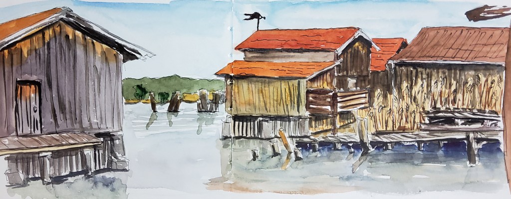 Und diese alten Bootshäuser (auch oben im Bild) bieten auch zum Zeichnen und Malen schöne Motive: