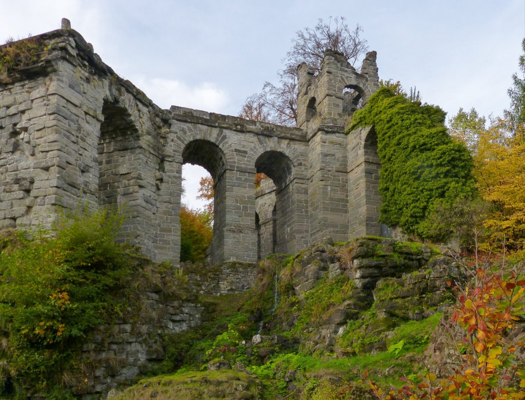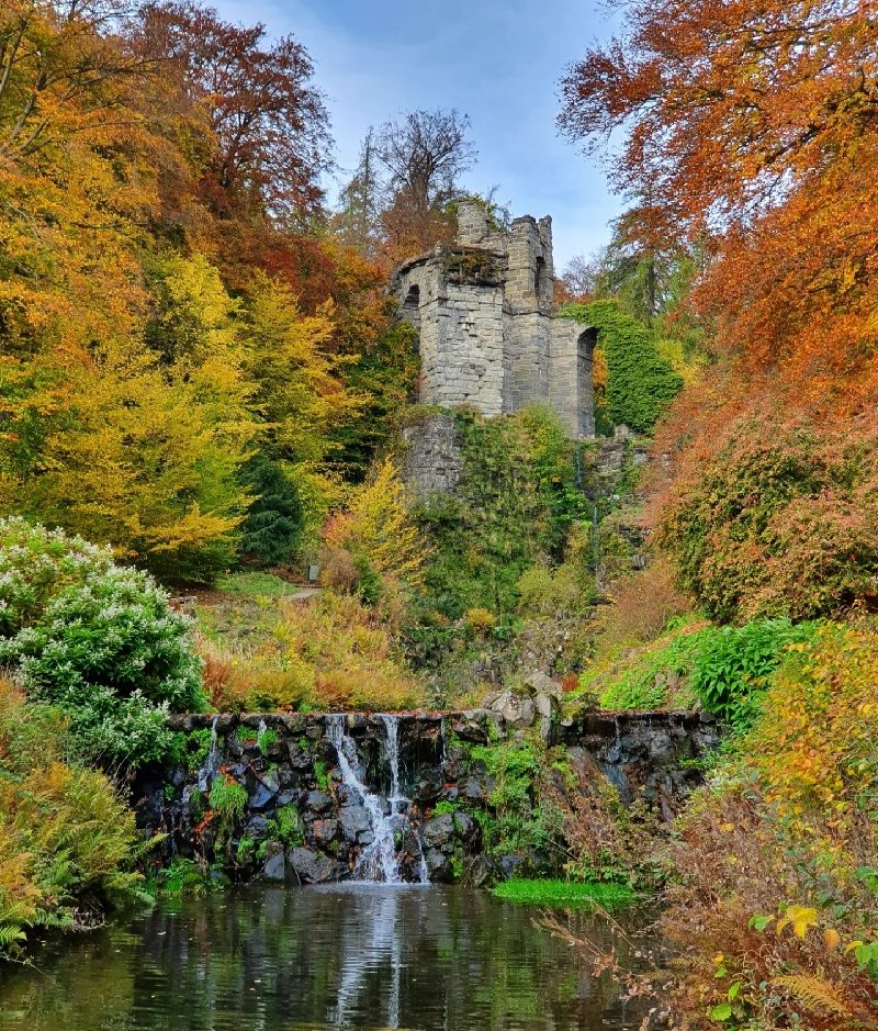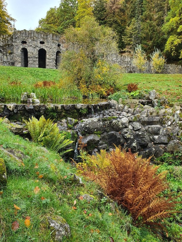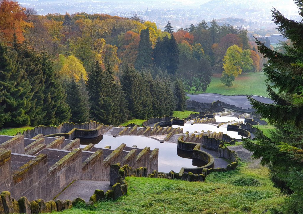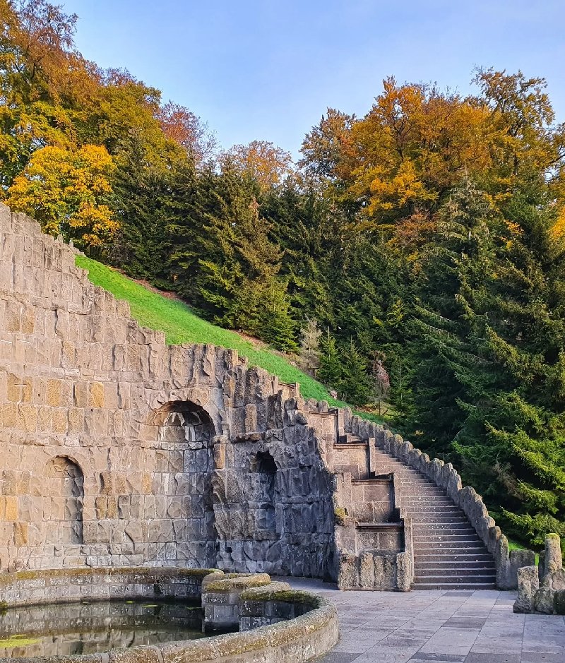 Vorletzte Woche verbrachte ich einen Vormittag im Bergpark Kassel-Wilhelmshöhe (Unesco Welt-Kulturerbe). Er wurde im Laufe von 3 Jahrhunderten immer wieder neu gestaltet von den jeweiligen Herren auf Schloss Wilhelmshöhe. Er ist sehr groß (560 ha). Sehr beliebt sind die Wasserspiele, die auch heute noch betrieben werden, allerdings nur sonn- und feiertags sowie mittwochs, und zwar auch nur von 14.30 bis 16.00 Uhr. Das konnte ich diesmal nicht schaffen. Trotzdem war es ein tolles Erlebnis! Die Wasserläufe und Teiche, die Fantasiegebäude und nicht zuletzt der reiche Bestand an großen, alten Bäumen sorgen für tolle Aussichten, Stimmungen und Motive! Jetzt im Herbst sorgt die Laubfärbung für ganz besonderen Genuss.