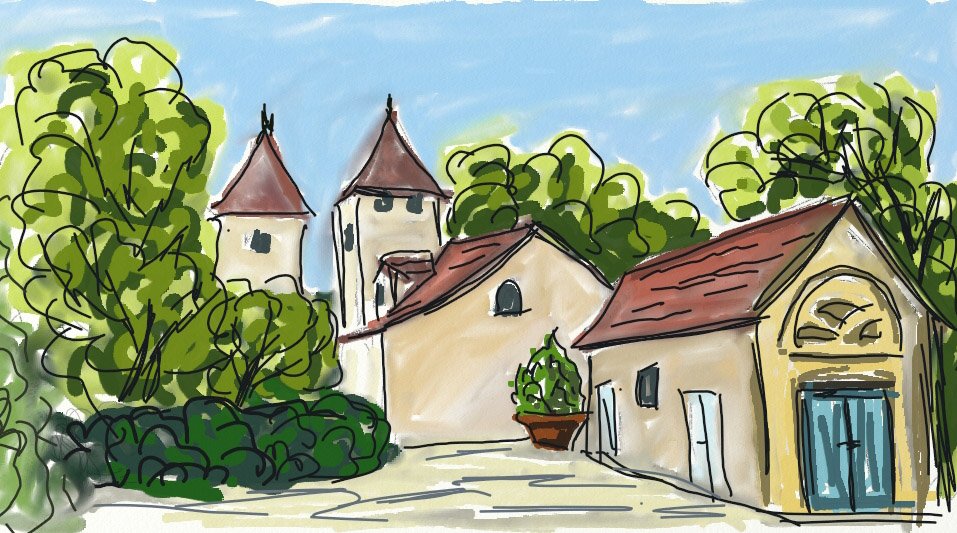 Eine Villa. Es wird wieder deutlich, dass beim Arbeiten auf dem kleinen Display die Abstraktion bzw. Vereinfachung/Weglassen automatisch erfolgt. Daher möchte ich gern damit weiter üben, auch wenn es keine großen Kunstwerke werden. Andererseits werde ich mal schauen, ob ich einen dünneren Touch-Pen bekomme, mit dem ich etwas präziser arbeiten kann.