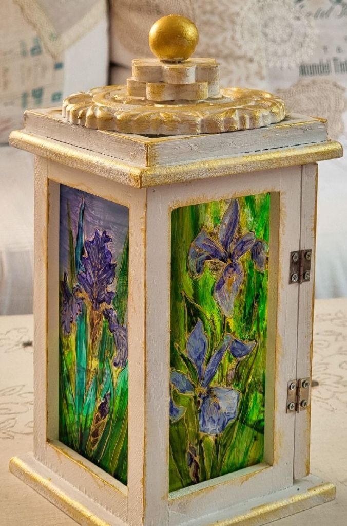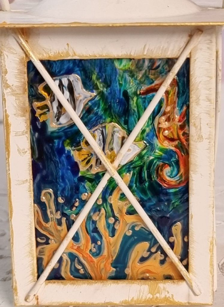 The third lantern is a tiny one, I’ve painted small, simplified versions of underwater scenes on the panels.