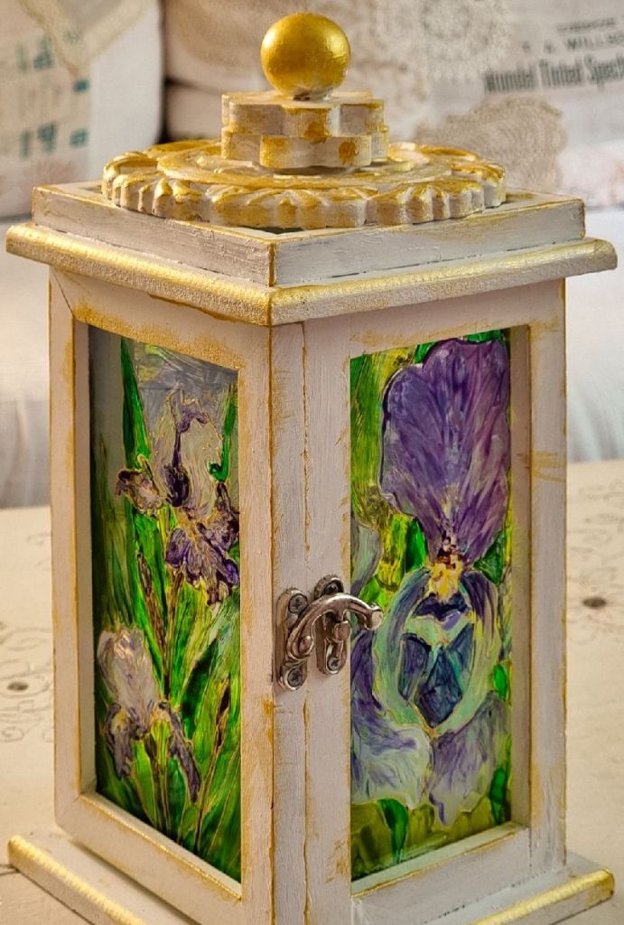Also, I found three lanterns in different sizes. Above a small, metallic one, below a larger, wooden one.