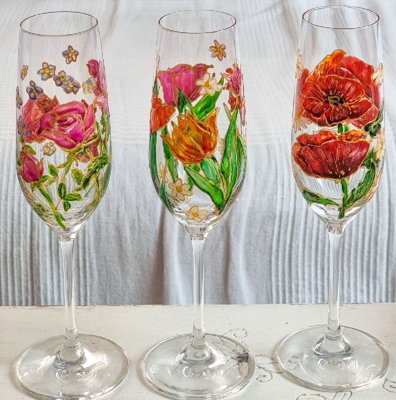 Getting more confident, I at last painted a set of 6 glasses for sparkling wine: