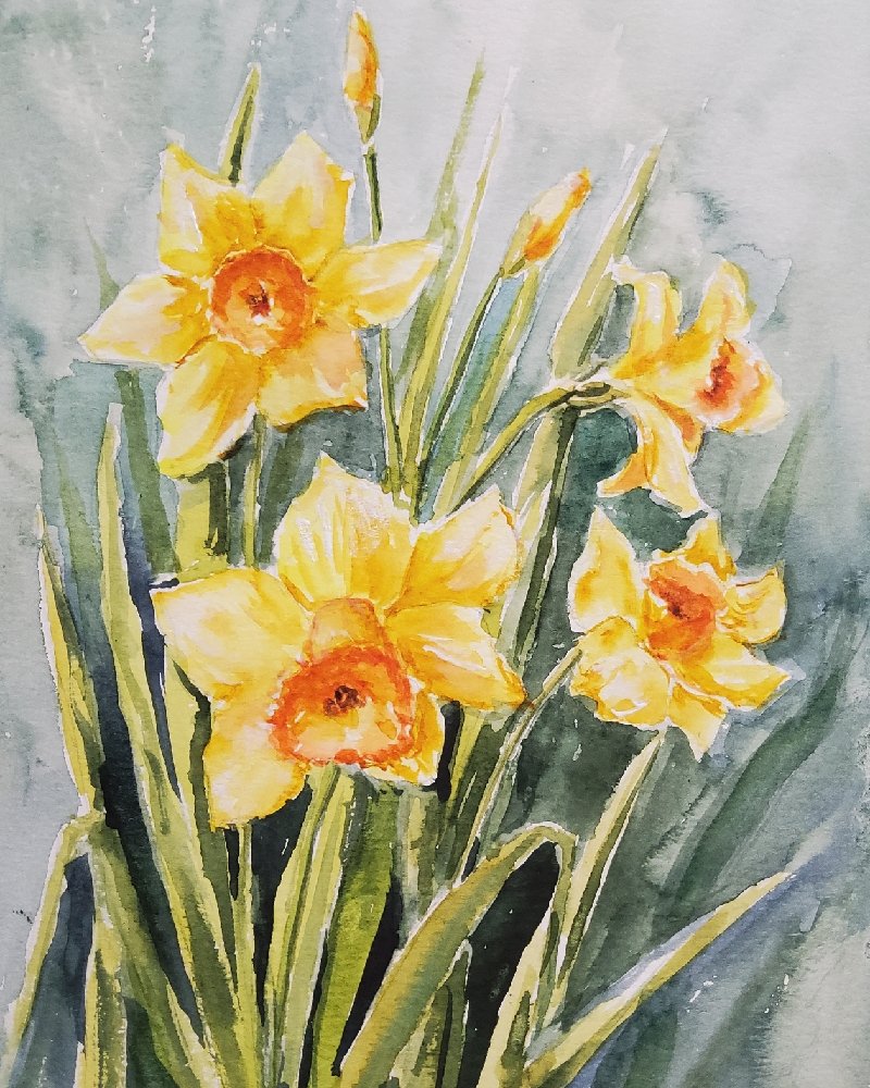 Nachdem ich im Netz bemalte Glasvasen einer brasilianischen Künstlerin gesehen hatte, spielte ich schon länger mit dem Gedanken, das auch zu versuchen. Nun hat mich ein bunter Blumenstrauß aus Tulpen und Hyazinthen inspiriert, eine ca. 15cm hohe Vase zu bemalen. Zunächst nur eine kleine, die ich schon besaß, zum Ausprobieren.