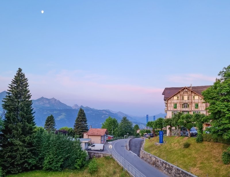 6.00 früh steht noch der Mond über Beatenberg/at 6am the moon still looks down on Beatenberg