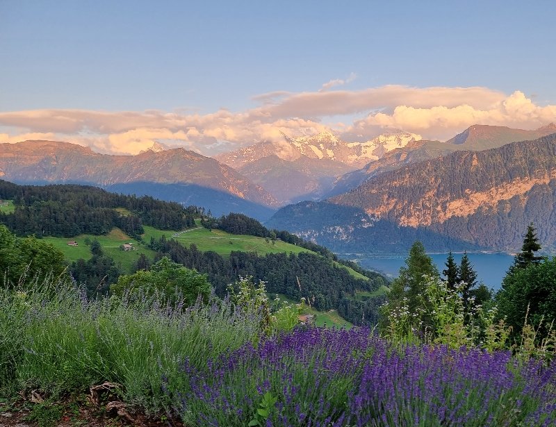 The second weekend of July I already had the Friday off. So, with great weather forecast, I started Thursday in the afternoon for Switzerland. First, I went to Beatenberg on Lake Thun (near Interlaken), where I enjoyed the panoramic view in the evening: