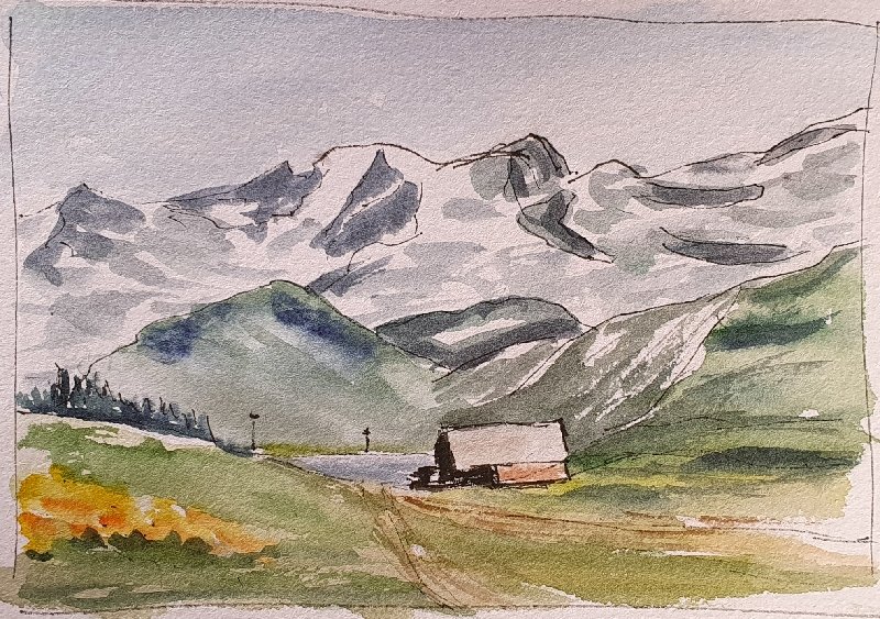 Two years ago I had already done the cable car trip up Mount Titlis, but only half the way to Lake Trübsee. This time we went to the upper terminus, on 3000m over sea level. There is still snow up there and a glacier (which, alas, is also dwindling each year…). Visitors during the summer season who don’t hike or climb may walk the cliff walk (photo above), visit the glacier cave or (for the brave😉) try the „Flyer“, a Zipline. The latter, though, is not operated this year because of too few tourists during Corona.