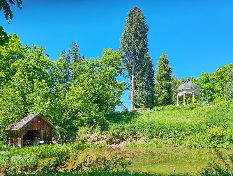 In Dießen am Ammersee liegt dieses Kleinod, ursprünglich von den Baronen von Schacky auf Schönfeld 1904 angelegt, inzwischen nach längerem Dornröschenschlaf von einem extra gegründeten Verein wieder zum Leben erweckt. Er ist frei zugänglich, bietet aber weder Restaurant noch Toiletten, das sollte man beachten. Ein kleines Picknick auf einer der Parkbänke ist ja auch schöner – und öffentliche Toiletten gibt es nicht weit entfernt an der Seepromenade.