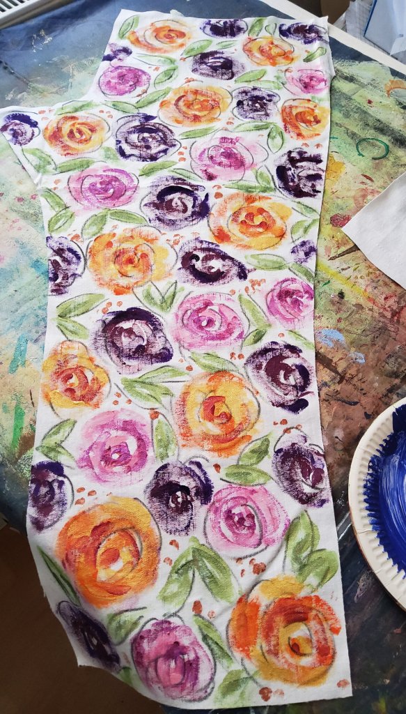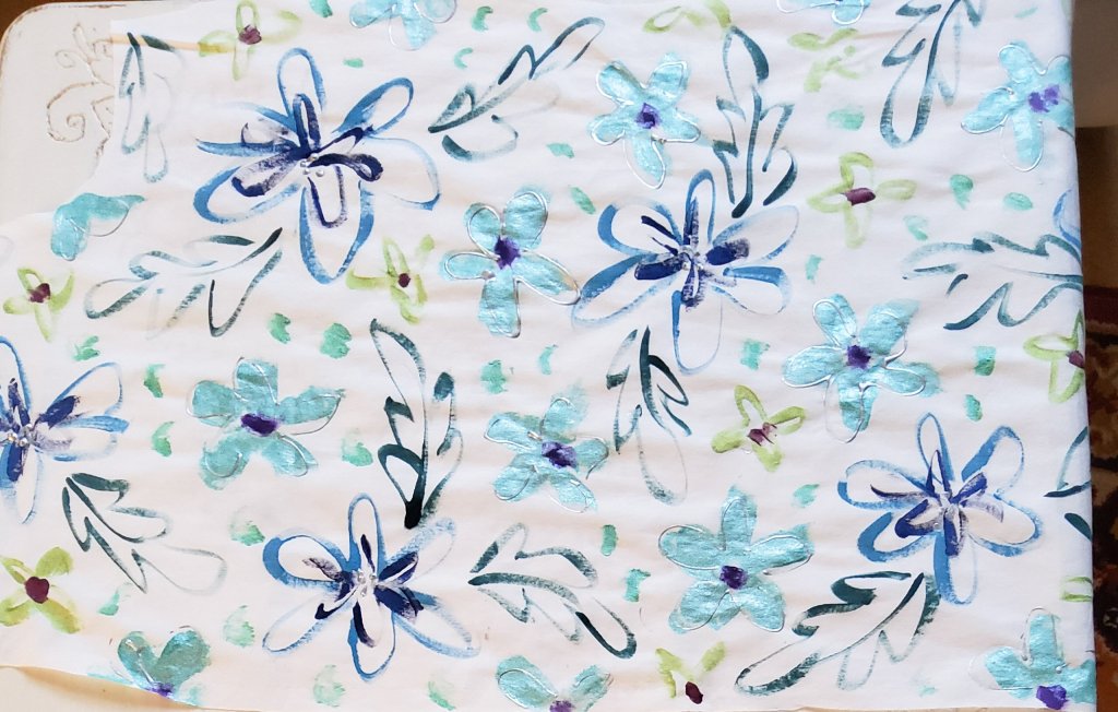 The shirt above has just been painted with flowers inspired by the beautiful acrylics by artist Kathleen Rietz.
